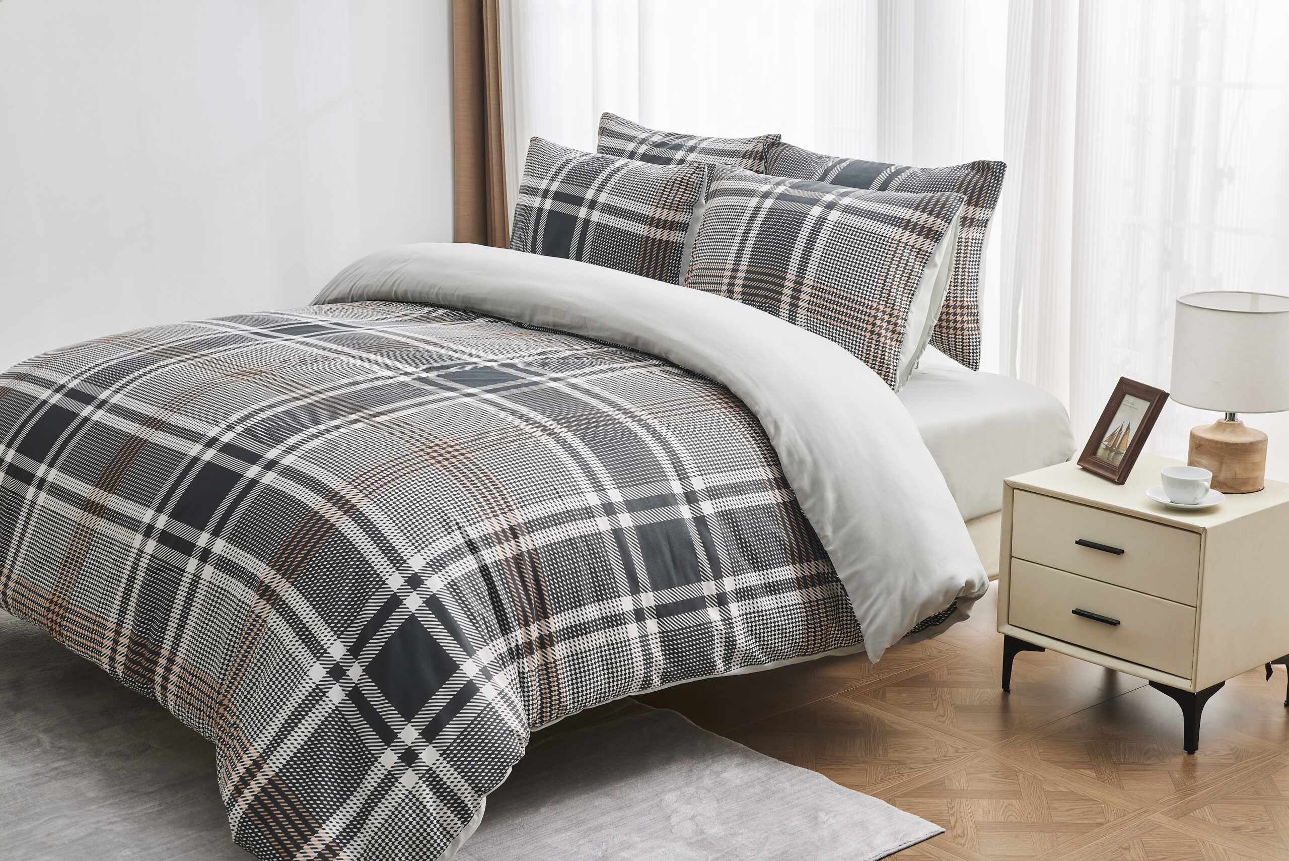 • Classic check design that suits modern and traditional bedrooms.
