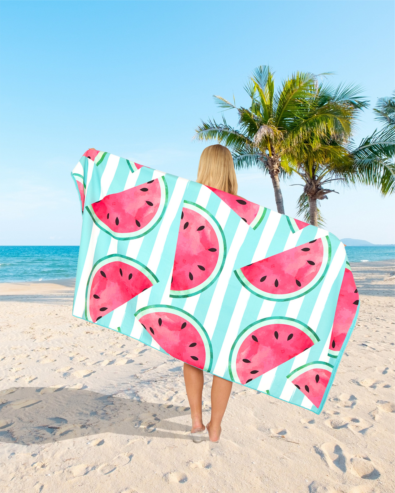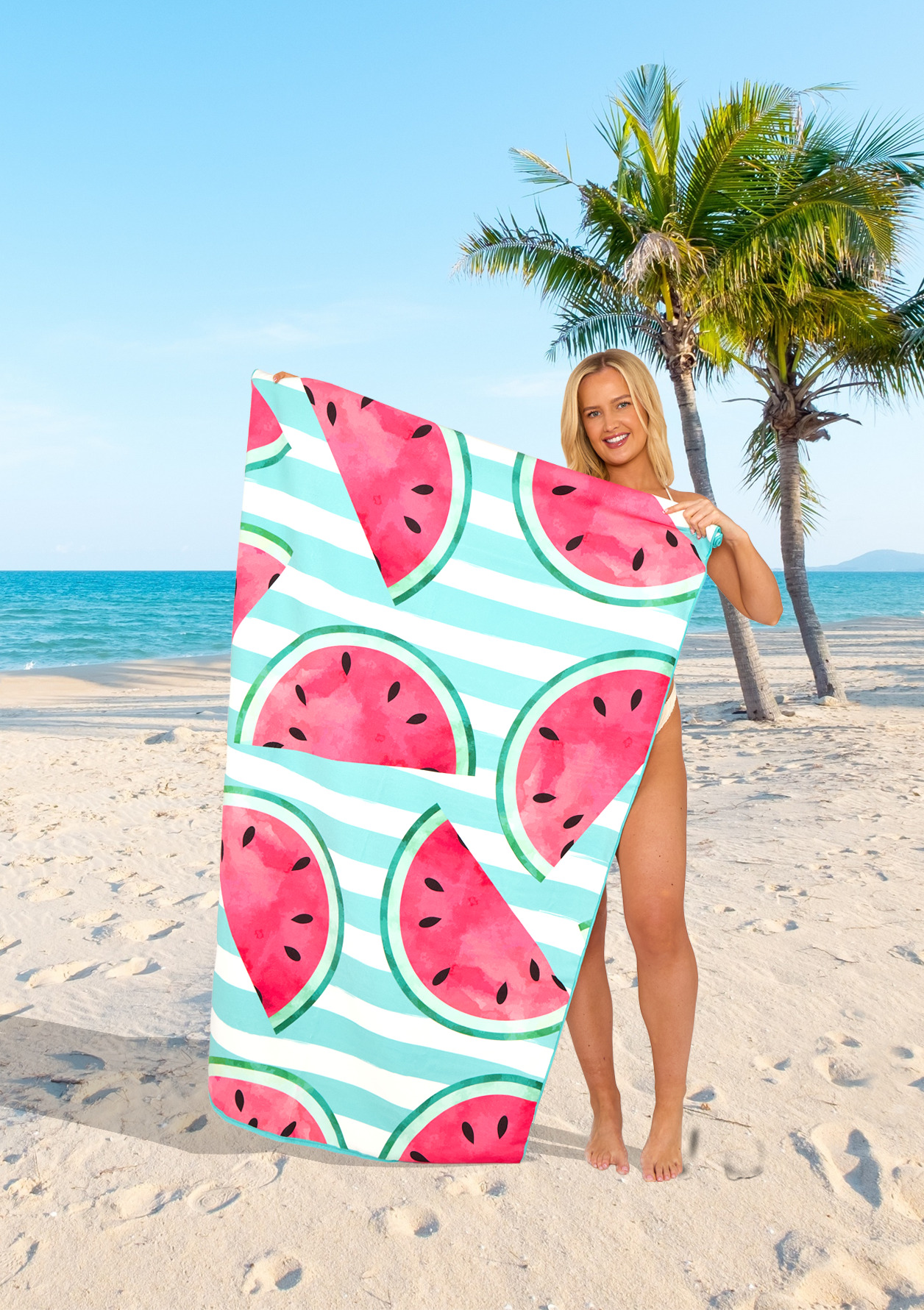 The 100% Microfiber Watermelon Stripe Printed Beach Towel is durable, soft, breathable, and very comfortable to touch, making it friendly for people with sensitive skin. It dries three times faster than a standard polycotton towel! Quick-drying fabric can absorb water from your body quickly and dry it in a short time. Place this blanket directly on the sand or grass. After use, you can quickly and easily shake off the sand. Thanks to its smoother surface, this high-quality towel is sand-free.